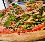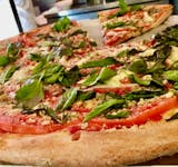 Fresh Tomato, and Mozzarella with fresh basil on our hand tossed dough.