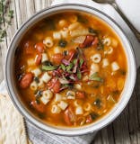 Thin and Crispy hand tossed pizza with red sauce, Ricotta Cheese, ground beef and our special blend of herbs.